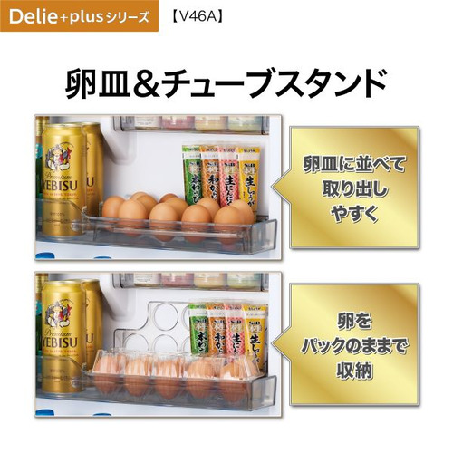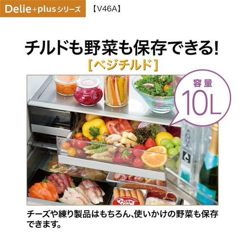 AQUA 冷蔵庫 458L 左開き 4ドア 幅59.5cm 大容量冷凍室 見える野菜室 AQR-V46AL(S) チタンシルバー