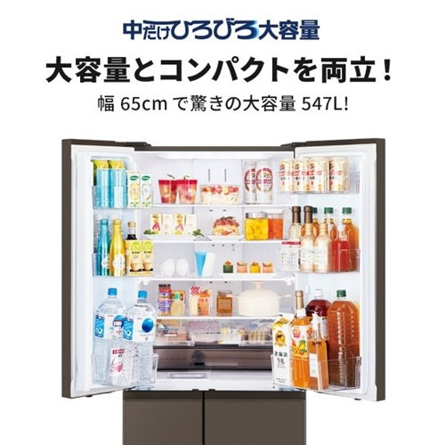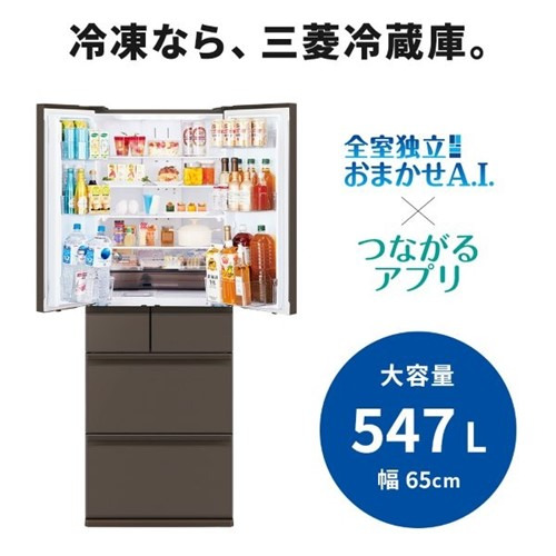 三菱電機 冷蔵庫 547L 観音開き 6ドア 幅65cm できちゃうV冷凍+ 切れちゃう瞬冷凍A.I. アイストップ・Eco MR-WZ55N-H グレー系
