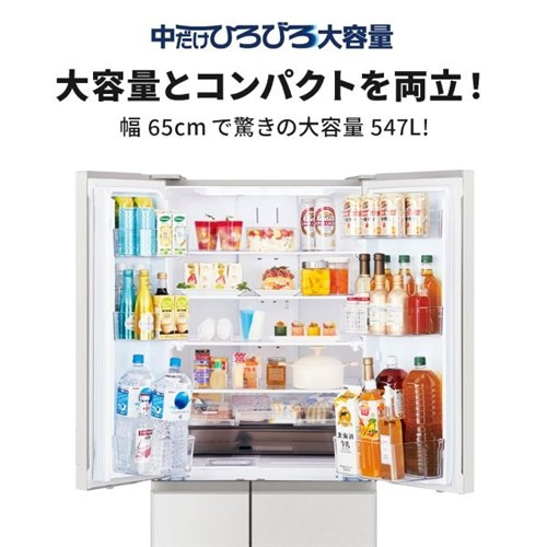 三菱電機 冷蔵庫 547L 観音開き 6ドア 幅65cm できちゃうV冷凍+ 切れちゃう瞬冷凍A.I. アイストップ・Eco MR-WZ55N-W ホワイト系