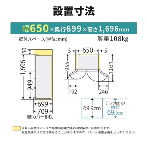 高さ(mm)×幅(mm)×奥行(mm):1696×650×699