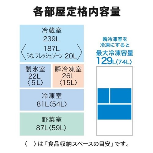 冷蔵室(スライド室):239L(内、スライド室20L)