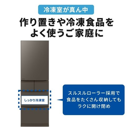 三菱電機 冷蔵庫 455L 右開き 5ドア 幅60cm できちゃうV冷凍+ 切れちゃう瞬冷凍A.I. アイストップ・Eco MR-BD46N-H グレー系