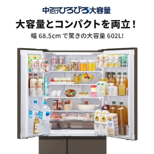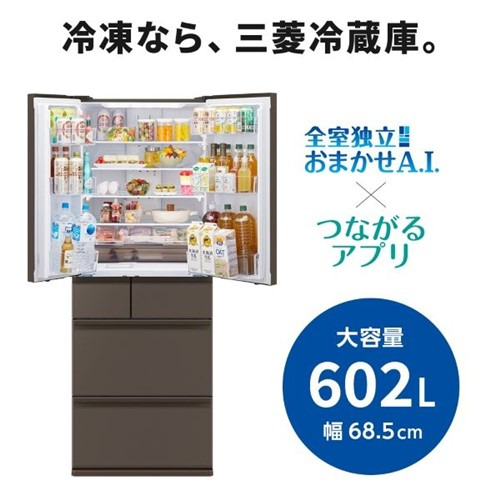 三菱電機 冷蔵庫 602L 観音開き 6ドア 幅68.5cm できちゃうV冷凍+ 切れちゃう瞬冷凍A.I. 真ん中野菜室 MR-MZ60N-H グレー系