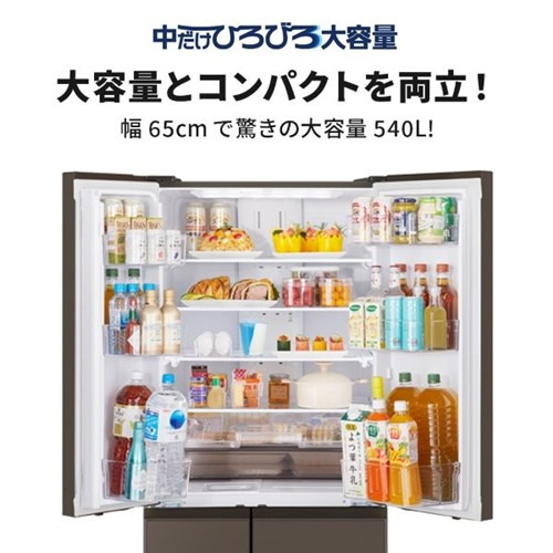 三菱電機 冷蔵庫 540L 観音開き 6ドア 幅65cm できちゃうV冷凍+ 切れちゃう瞬冷凍A.I. 真ん中野菜室 MR-MZ54N-H グレー系
