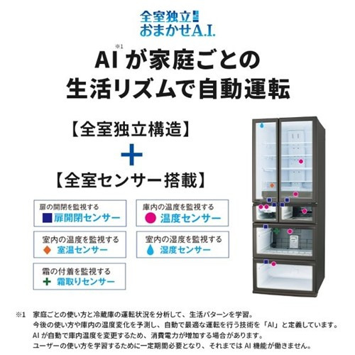 製氷室の運転を節電モードにする新機能「アイストップ・Eco」を塔載。冬場、製氷室を使わない方に対して、全室独立構造を採用している三菱だからこそできる部屋ごとの節電機能をご提案。部屋別おまかせエコとアイストップ・Eco合わせて約15〜25%節電運転。
