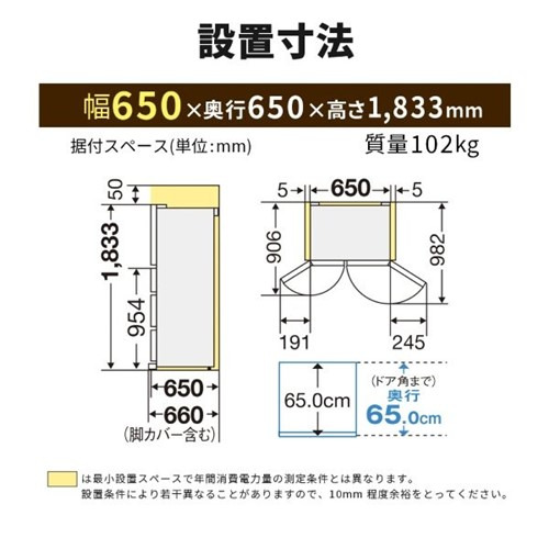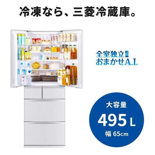 三菱電機 冷蔵庫 495L 観音開き 6ドア 幅65cm できちゃうV冷凍+ 切れちゃう瞬冷凍A.I. 大容量冷凍室 MR-JW50N-W ホワイト系