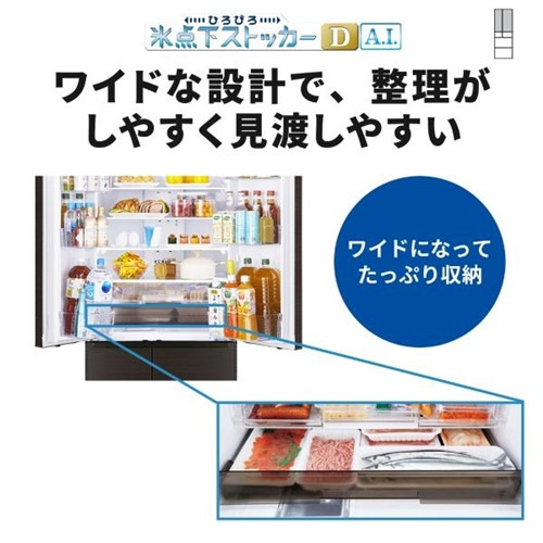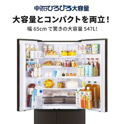 三菱電機 冷蔵庫 540L 観音開き 6ドア 幅65cm できちゃうV冷凍+ 切れちゃう瞬冷凍A.I. 真ん中野菜室 MR-JM54N-M グレー系