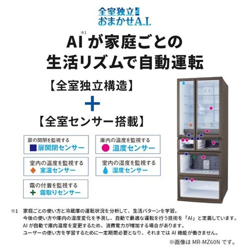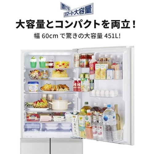 三菱電機 冷蔵庫 451L 右開き 5ドア 幅60cm できちゃうV冷凍+ 切れちゃう瞬冷凍A.I. 真ん中野菜室 MR-MD45N-W ホワイト系