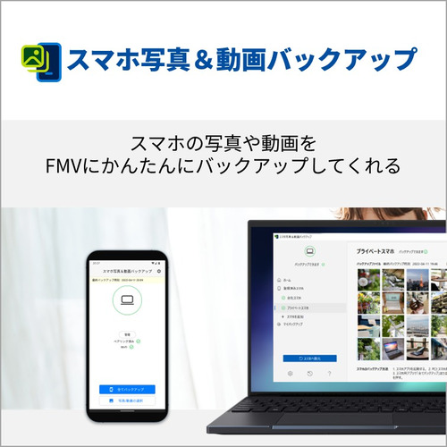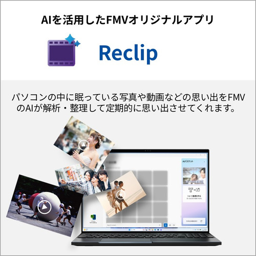 パソコンの中に眠っている写真や動画などの思い出をFMVのAIが解析・整理して定期的に思い出させてくれます。
