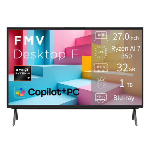 富士通 デスクトップPC FMV Desktop F FMVF77L1BA[27型 | WQHD | Ryzen AI 7 | 32GB | 1TB | Windows 11 Home | Office OP付 | ブラック]