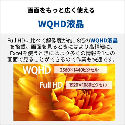 Full HDに比べて解像度が約1.8倍のWQHD高輝度低反射液晶を搭載。