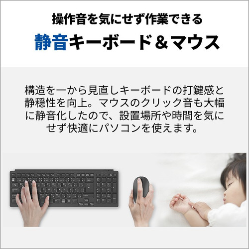 従来に比べ打鍵音・クリック音を大幅に静音化した静音マウス&静音キーボードはWeb会議中の操作も夜中のWeb閲覧も周囲を気にすることなく快適に使えます。