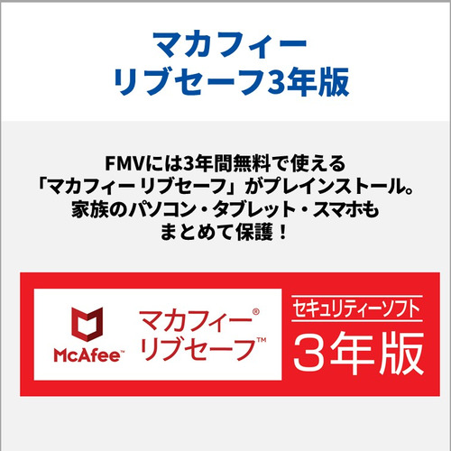 FMVには3年間無料で使える「マカフィー リブセーフ」がプレインストール。家族のパソコン・タブレット・スマホもまとめて保護できます。