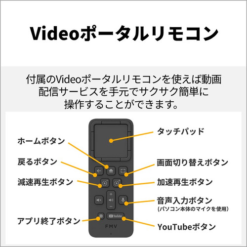FMVオリジナルのVOD視聴アプリVideoポータルを搭載。Youtubeなどの動画配信サービスをすぐに起動、再生して楽しむことができます。