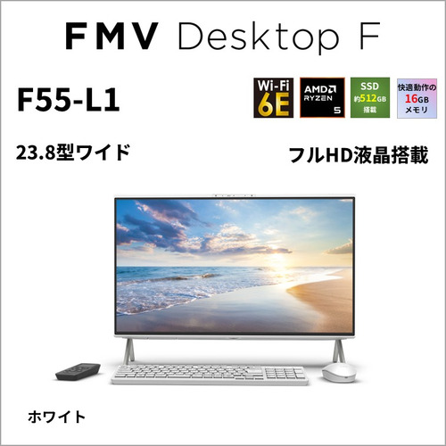 富士通 デスクトップPC FMV Desktop F FMVF55L1WA[23.8型 | フルHD | Ryzen 5 | 16GB | 512GB | Windows 11 | Office OP付 | ホワイト]