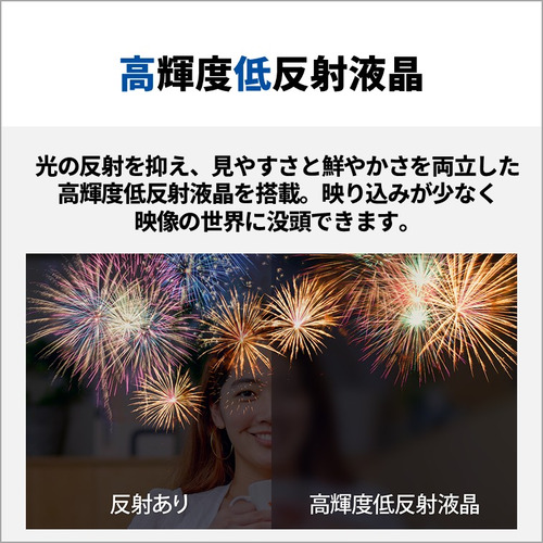 光の反射を抑え、見やすさと鮮やかさを両立した 高輝度低反射液晶 を搭載。