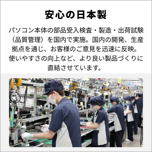 パソコン本体の部品受入検査・製造・出荷試験(品質管理)を国内で実施。