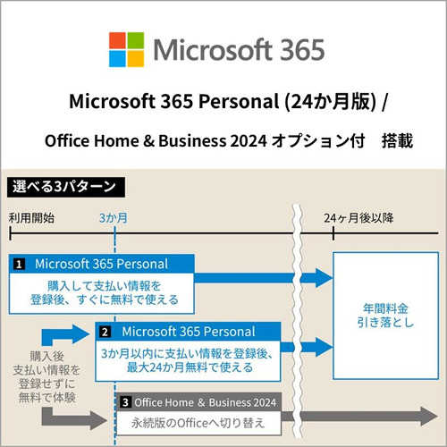 Office系ソフト:Microsoft 365 Personal (24か月版) / Office Home & Business 2024 オプション付