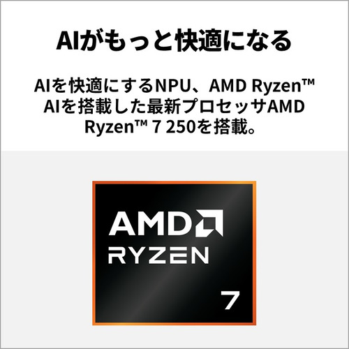 AIを快適にするNPU、AMD Ryzen AIを搭載した最新プロセッサAMD Ryzen 7250を搭載。