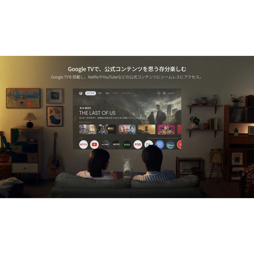 GoogleTVを搭載し、NetflixやYouTubeなどの公式コンテンツにシームレスにアクセス可能です。
