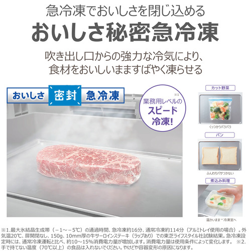 ●長く保存した食品もおいしい「おいしさ持続上質冷凍」