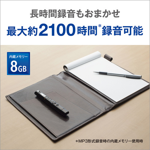 MP3形式(8 kbps mono)アルカリ乾電池使用時:約27時間30分、ニッケル水素充電池:約20時間