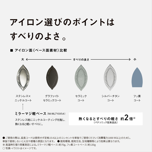 前後に動かしてもシワになりにくいWヘッドに、グラファイトセラミックコートでなめらかなかけ心地。軽々動くからテクニックいらずでアイロンがけできる。