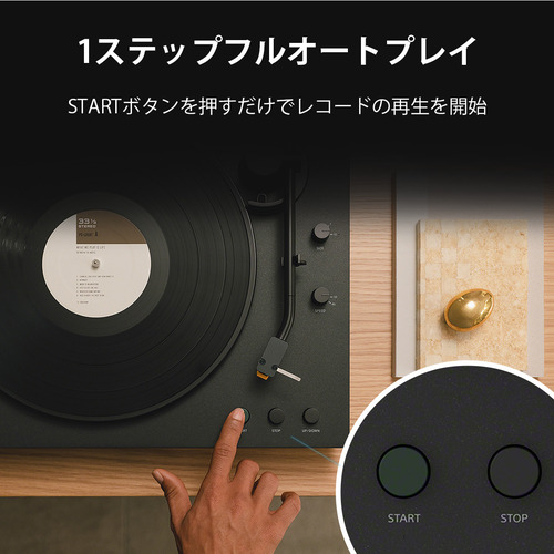 STARTボタンを押すだけで、ペアリング済みのBluetooth(R)対応オーディオ再生機器と接続し、レコードの再生・停止(オートスタート・オートリターン・オートストップ)を自動で行います。