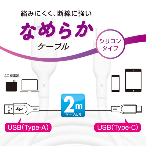 オーム電機 SMT-L20SAC-W なめらかケーブル USB-A to C 2m ホワイト
