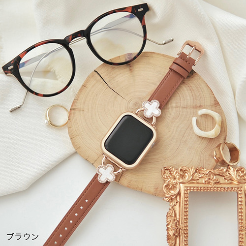 GAACAL W00502BRA APPLE WATCH 1-11/SE1-3 38/40/41/42(10-11)MM クローバーモチーフバンド ブラウン