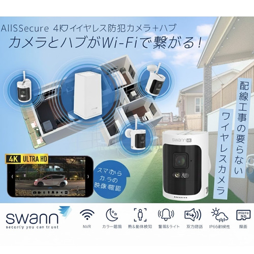 SWANN SWNVW-AS4KCAM-JP WIFI防犯カメラ AllSecure4K増設用カメラ1台単品 配線工事不要 IP66警報&ライト搭載 ホワイト