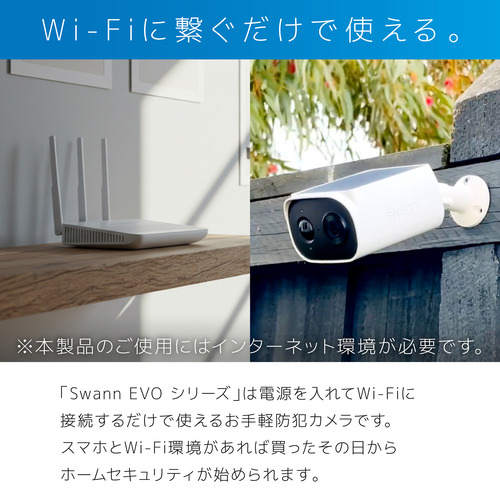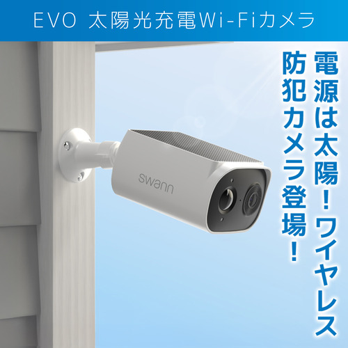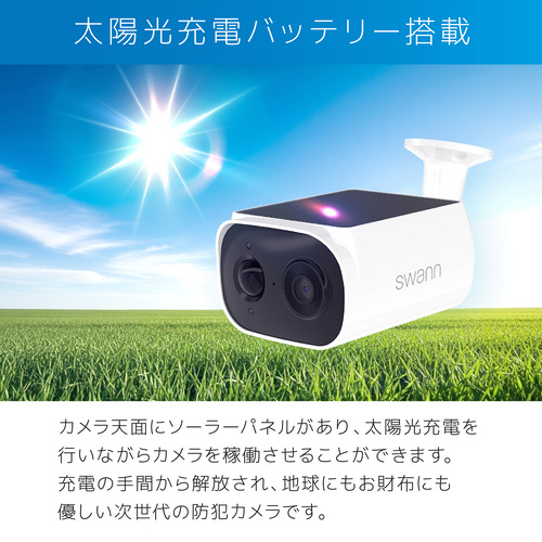 SWANN SWIFI-SESOL2KBC2-JP WIFI防犯カメラ 2K EVO ソーラーパネル カメラ2台セット 2K高画質 120度広視野角 暗視モード ホワイト