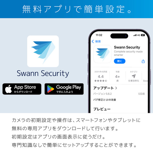 ●スマートフォンからの監視、設定にはSwann Securityアプリを使用。