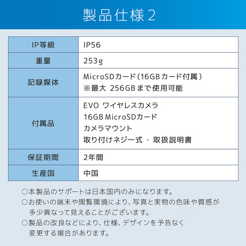 付属品、保証期間:カメラ2台、16GBMicroSDカード、カメラマウント、取り付けネジ一式・取扱説明書 、2年間