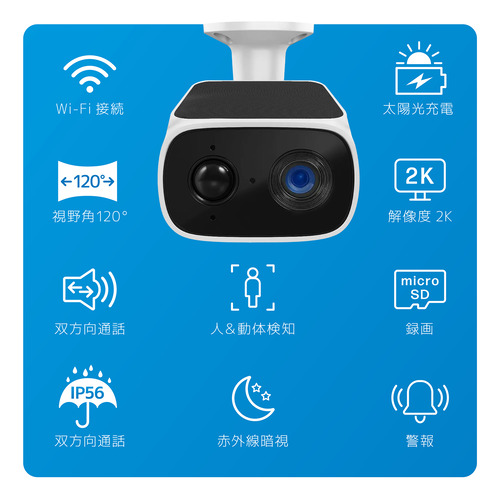 解像度、カメラ視野角:2K QHD(2560 × 1440)、120度 超広角