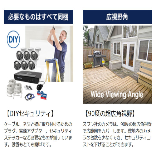 SWANN SWNVK-885804-DS 防犯カメラ NVRシステム 8ch 4Kカメラ4台セット 2TB HDD搭載 4K画質で録画 IP66防水防塵 ホワイト