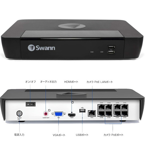 SWANN SWNVK-885808-DS 防犯カメラ NVRシステム 8ch 4Kカメラ8台セット 2TB HDD搭載 4K画質で録画 IP66防水防塵 ホワイト