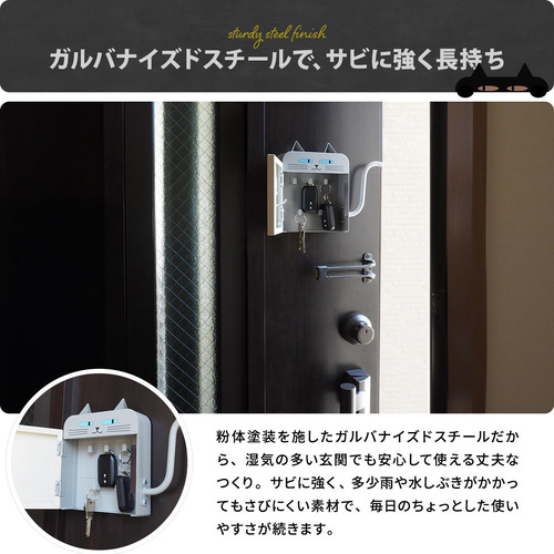 B.Bファニシング 猫型キーボックス 幅広強力マグネット 5つのフック 傘掛け ブラック ONES0392KIBLK
