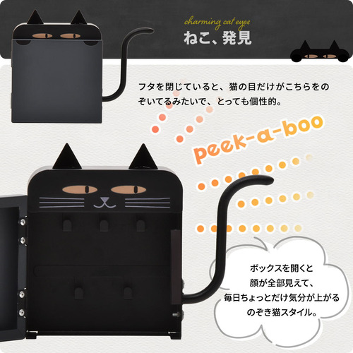 蓋を閉じていると猫の目だけが見える、のぞき猫スタイル。