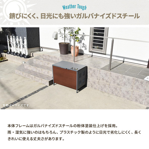 ゴミ収納だけでなく、南京錠等を付ければ簡易宅配ボックスにも使える仕様。