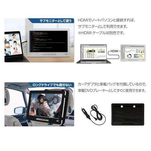 ●壁掛・スタンド・車載の3通りの視聴スタイルに対応