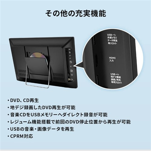 対応ディスク:DVDビデオ、DVD-R/RW(CPRM/VR対応)、オーディオCD、CD-R/RW