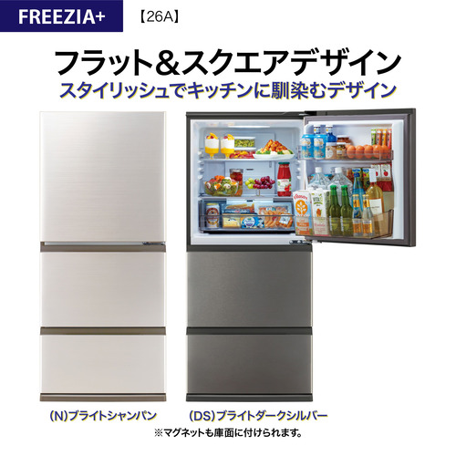 AQUA 冷蔵庫 262L 右開き 3ドア 幅60cm 大容量冷凍室 省エネ設計 AQR-26A(N) ゴールド系