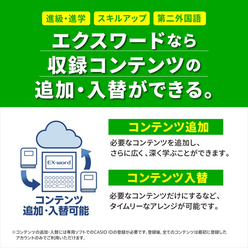 ※差替コンテンツは、電子辞書ご購入後にお客様ご自身で電子辞書本体にダウンロードをしてご利用ください。