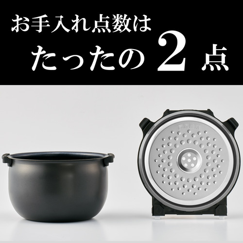 お手入れ部品は「内なべ」「内ぶた(着脱式)」の2点のみ。内ぶたは食器洗い乾燥機対応なので、毎日のお手入れをラクにしていただけます。