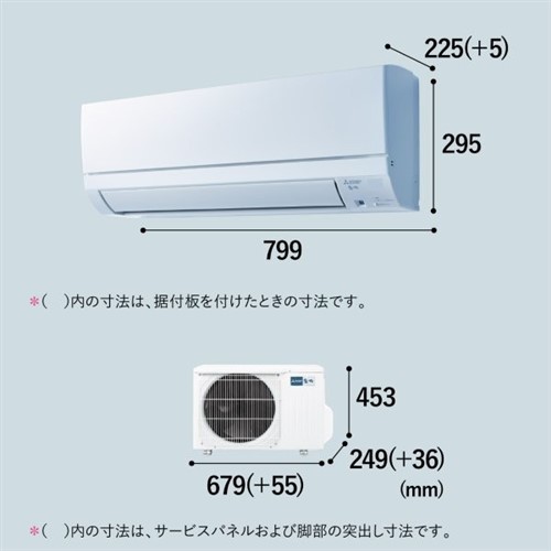 本体寸法:【室内機】たて225×よこ×799×高さ295mm【室外機】たて249×よこ×679×高さ453mm