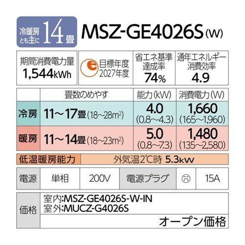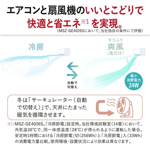 三菱電機 エアコン 14畳 霧ヶ峰GEシリーズ フロアアイ搭載 はずせるボディ 高温みまもり MSZ-GE4026S-W ホワイト系 2026年モデル