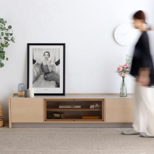 テレビまわりを壁面でまとめることで、お部屋がすっきりとした印象に。収納力もしっかりあり、リビングの整理整頓に役立ちます。