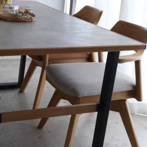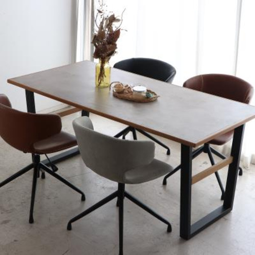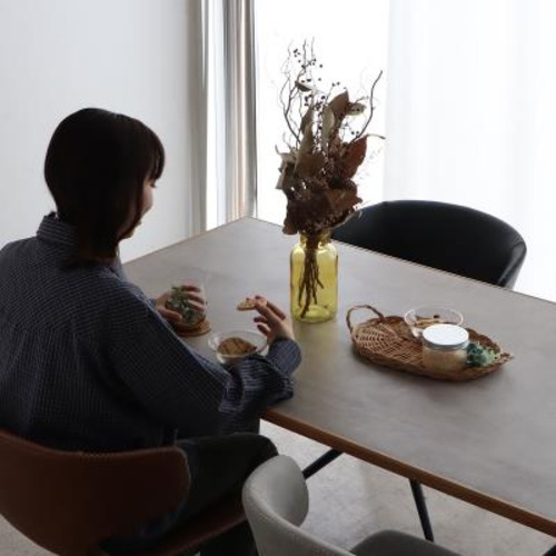 あたたかみのある木目と、落ち着いた石目調の天板がバランスよく調和。シンプルながらも、食卓にほどよい存在感を与えます。