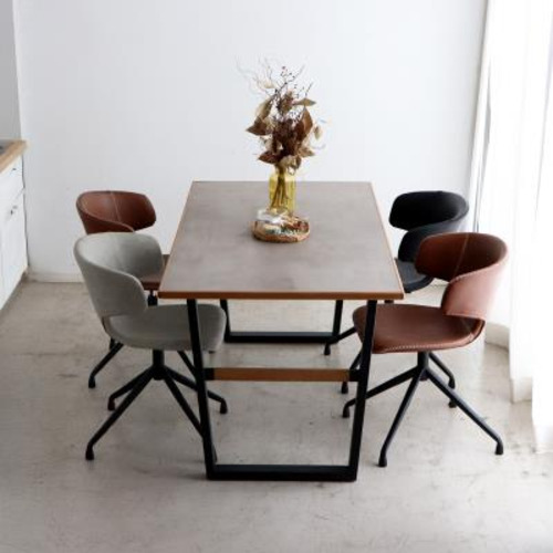 天板と脚を組み合わせて選べる、カスタマイズできるダイニングテーブルです。天然木の縁と大理石調天板の組み合わせが、空間を上品にまとめます。